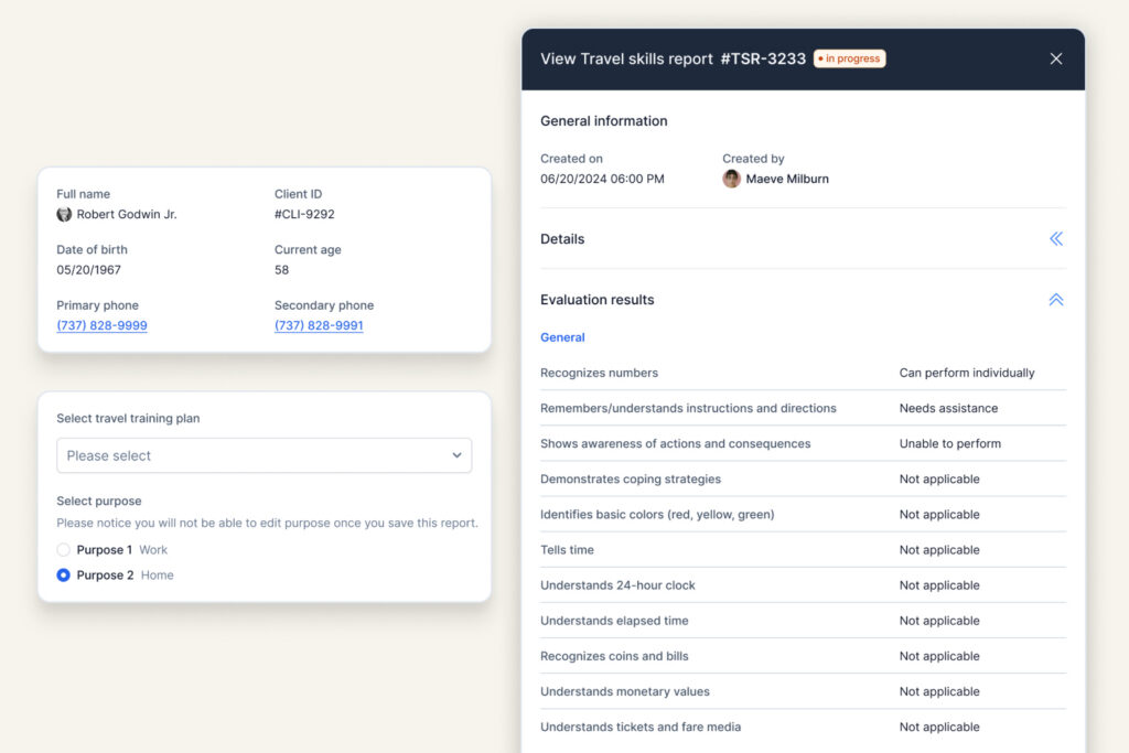 Travel training should empower clients, not overwhelm staff. The GetGoing Travel Training module centralizes everything: initial intake, custom training goals and plans, intersection and barrier analysis, progress tracking, and post-training surveys. You can even record outreach efforts, making GetGoing your travel training one-stop shop. You gain efficiency while clients receive the thoughtful, individualized training they deserve.